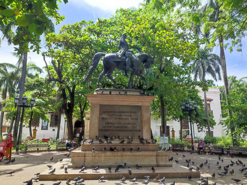 Aquí se erige una estatua ecuestre de Simón Bolívar y en el marco del parque están el Palacio de la Inquisición, el Museo del Oro, el edificio republicano del Banco de la República y las oficinas del Concurso Nacional de la Belleza.