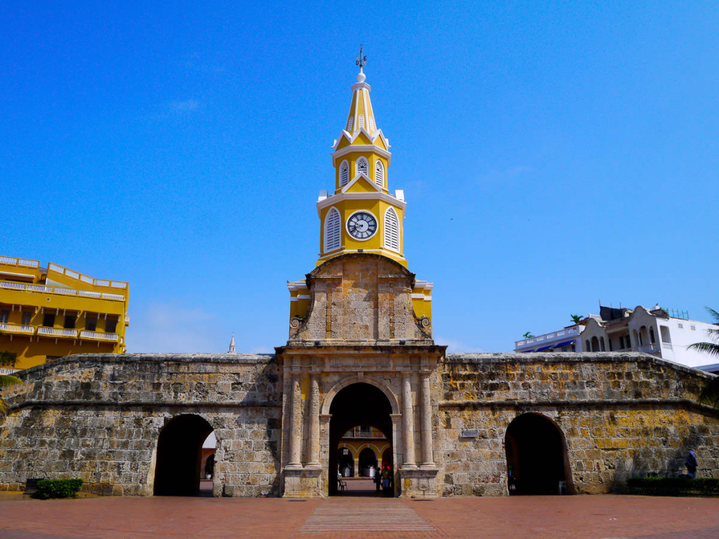 Esta es probablemente una de las primeras cosas que verás al llegar a Cartagena, ya que la torre del reloj se encuentra sobre la puerta principal del centro histórico, situado entre la Plaza de la Independencia y la Plaza de los Coches.