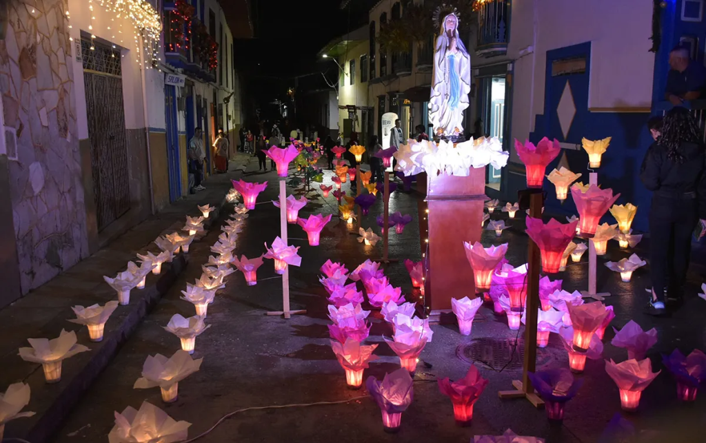 La víspera del festivo se celebra encendiendo velas y faroles en las calles, andenes, balcones y ventanas para honrar a la Virgen María. Muchos municipios son reconocidos por esta tradición